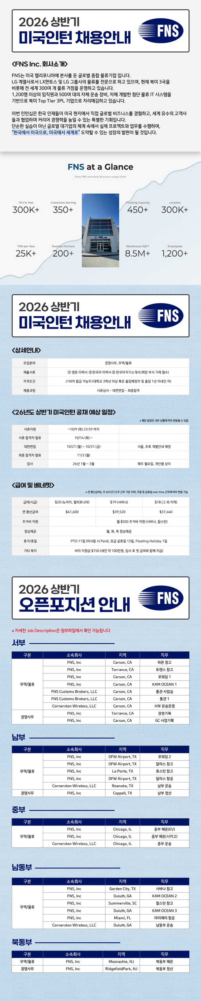 2026 FNS Inc. 북미법인 상반기 미국인턴 공개채용 자료입니다.